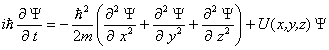Здесь m – масса частицы, i – мнимая единица, а Y(x,y,z,t) – шрёдингеровская волновая комплексная функция
