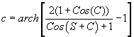 При S=p/2 и С=0 получаем: ch(c0)=3 с0=1,7627471740390860504652186499596 Рис.3. Зависимость длины основания гиперболического треугольника (с) от угла вершины С для треугольников. Первая регистрационная проекция предельной фигуры. Мнимое