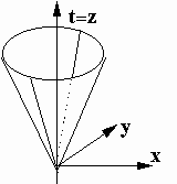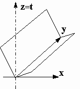 Ось z является продолжением атемпоральной стрелы времени t. Функционал T = t(z) здесь определяет хроноквантованные времениподобные интервалы. Плоскость XY представляет атемпоральный хроноквантовый срез реального Мира с x-темпоратой и y-координатой.