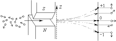 Теперь мы можем в деталях описать, что именно происходит с каждым атомом серебра в эксперименте Штерна-Герлаха. Пусть атом