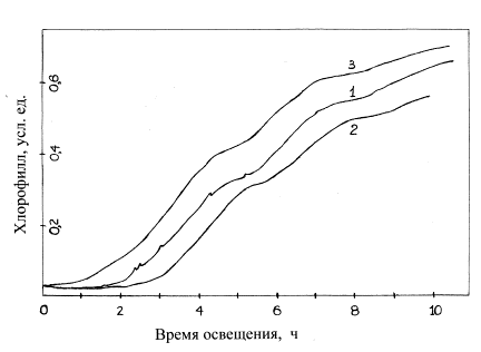 Скорость зеленения этиолированных (выращенных в темноте) растений