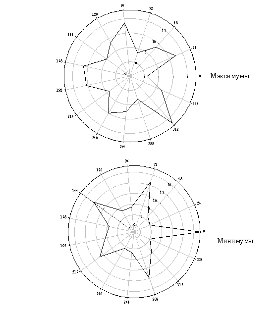 объем воды в них был ниже (минимумы) или выше (максимумы), чем в соседних. На рис 12 представлена типичная круговая