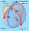 всюду во Вселенной? Что такое поле Хиггса?» [4]. Рис.1. «Детская» модель протона из [4]. «…без этих ответов мы не поймем истока и первоначала Вселенной. Мы не видим способов получения ответов на эти вопросы ни в рамках Стандартной модели, ни в рамках простых расширений Стандартной модели. …Чтобы попытаться пойти дальше Стандартной модели и ответить на эти вопросы, нужны новые эксперименты на сверхмалых расстояниях и при сверхвысоких энергиях. Однако это и трудно, и дорого. В настоящее время нам недоступны эксперименты при энергиях выше 1 ТэВ. Уже в 2007 году в ЦЕРНе (Женева) будет запущен новый ускоритель — Большой адронный коллайдер (БАК). Мы рассчитываем открыть на БАК принципиально новые физические явления. Совершенно определенно ожидается открытие частицы Хиггса» [4]. Обзор современного состояния нейтринной физики дал