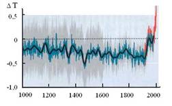 Ход отклонения температуры поверхности Земли за тысячу лет от среднегодового