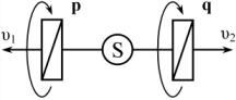 поляризации в соответствии с направлением поляризаторов. Приведем поляризаторы p-q (можно вместе с источником S) в