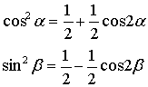 воспользуемся формулами для понижения степени: