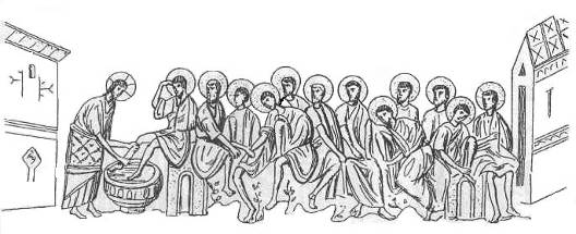 Рис.6. Иконописное изображение процедуры омовения Иисусом ног апостолов [28]