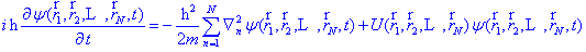 "Философские вопросы современной физики". АН СССР, 1952. Введение Уравнение Шредингера, описывающее эволюцию волновой функции ансамбля многих частиц, не обладающих спином, имеет вид Здесь полагается, что массы всех