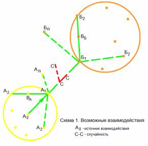 полно следует называть мультивзаимодействием. 3. Регистрация взаимодействий На схеме 1 объекты А и Б изображены в виде множества точек