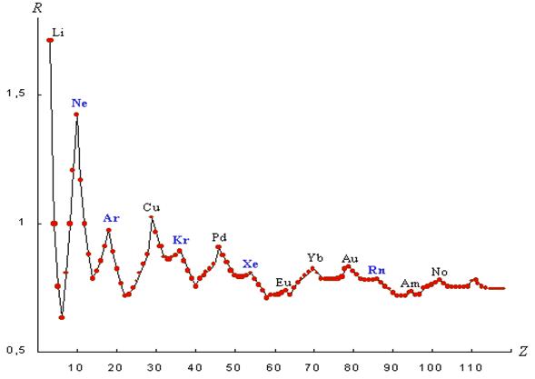 самого принципа усложнения системы: от увеличения количества нуклонов в ядре и усложнения электронных