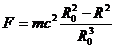 Выразим скорость v через скорость света с и подставим её в формулу центробежной силы, получим: Примечательно