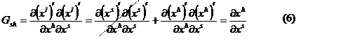 Здесь для наглядности записи мы использовали индексы: ssubj и hhide, пробегающие значения 0,1,2,3 и 4 соответственно. Вычислим компоненты  метрического тензора . С учетом условия независимости физических координат от скрытой координаты , из (5) получим: