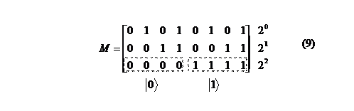 Вершины этого куба описывают фундаментальные состояния модели 3-х битного мира W. Запишем все 8 векторов состояний этого мира в виде столбцов матрицы.