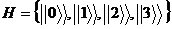 Очевидно, что вследствие неполноты субъект S не способен различить каждое из этих состояний. Так, например, субъект, состояние которого описывается всего одним битом (здесь мы предполагаем, что старший бит 22 относится к субъекту, а биты 21, 20 к остальной части мира), способен различить только 2 состояния из 8. Обозначим их  и . На рисунке мы их обвели пунктирной линией. То есть каждое, наблюдаемое им (физическое) состояние представляет собой класс пропорциональных элементов (4-х кратно вырождено). Класс неразличимых или скрытых состояний обозначим . Они задаются комбинациями двух младших битов. Подмножества скрытых состояний, относящиеся к соответствующим субъективным состояниям  и   , представляют собой чистые квантовые состояния в базисе наблюдателя с весами пропорциональными корню квадратному из числа их элементов. Объединение подмножеств скрытых состояний, принадлежащих  состояниям  и   образует суперпозицию базовых состояний [2].  Объективное состояние системы запишем, как тензорное произведение: . Вектор  вращается в H-пространстве. Объективные состояния  и   это петли[5], описываемые комплексными числами. Состояние  называют квантовым. В нашем примере оно является вектором в двухмерном комплексном пространстве (дискретном аналоге  Гильбертова пространства). Обратим внимание на то, что переход  происходит за нулевой интервал физического времени, но длиться в скрытом (объективном) времени. При переходе наблюдателя из состояния  скрытая часть вселенной, двигаясь по петле H-состояний, совершает полный цикл и  возвращается в исходное состояние. Похожий подход к квантовой механике исследует Felix M. Lev [19]. На основе чисто формальных аналогий делается вывод, что квантовые состояния могут быть представлены элементами проективного пространства над полем Галуа, а физические наблюдаемые - операторами, действующими в этом пространстве.