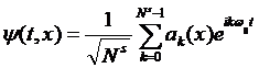 Здесь - основная частота, равная обратной величине периода возврата системы в исходную точку на петле.  - фундаментальная частота, равная обратной величине времени перехода причины в следствие.  – число состояний мира (число элементов поля Галуа ).  - объективное время (). Как мы уже говорили, наблюдателю, занимающему часть состояний конечного мира (являющегося субъектом мира), не могут быть доступны каждое из его (мира) состояний. Поэтому, "Природа" для наблюдателя представляться значительно более огрубленной, крупнозернистой, чем есть на самом деле. Если наблюдатель имеет число собственных состояний меньшее , то никаким физическим экспериментом в принципе он не сможет различить две соседние частоты в (10). Другими словами, наблюдатель неизбежно видит мир ренормализованным. Поэтому для того чтобы перейти к субъективному наблюдателю мы должны сгруппировать в (10) члены с неразличимыми наблюдателем частотами в кластеры   и приписать каждому новую частоту . Число членов в кластере i определяет соответствующий весовой коэффициент .
