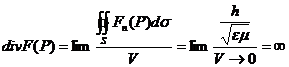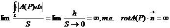 Так как здесь циркуляция есть величина постоянная, то при стягивании контура L в точку Р отношение величины циркуляции импульса к площади S, ограниченной этим контуром будет стремиться к бесконечности, т.е.