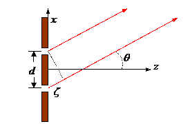 Здесь d – расстояние между щелями, λ – длина волны, θ – угол отклонения луча по отношению к оси z.