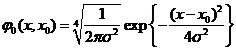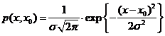 Здесь x0 математическое ожидание (математический центр щели), а σ стандартное отклонение (характеризует разброс выпадений x вокруг математического ожидания x0). Интеграл по всей области  x Î (–¥, ¥) от этой кривой равен единице.