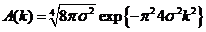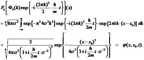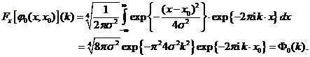 Можно видеть, . Данный волновой пакет расползается по мере того, как он удаляется от щели. Давайте представим этот пакет суперпозицией гармонических волн с волновыми числами k, заданными во всем интервале от –∞ до ∞ [9,10]. С этой целью выполним Фурье-преобразование данной функции