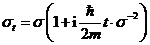 Следует обратить внимание, что этот член комплексный и время входит в его мнимую составляющую. При t=0 мы видим σt=0 = σ и в начальный момент времени функция φ(x,x0,t) вырождается в гауссову кривую φ0(x,x0), представленную формулой (3). Функция φ(x,x0,t) еще не является волновой функцией частицы, распространяющейся в направлении z, так как она не содержит член, который описывает трансляцию функции в область, простирающуюся по ту сторону экрана, см. направление стрелки на Рисунке 4.