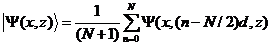 Совмещая начало отсчета на оси  с центром решетки, содержащей (N+1) щелей (= 0,1,2,...,N), см. Рисунок 4, получаем, что положение n-ой щели будет находиться в позиции x0=( N/2)d. Суперпозиция волн, излучаемых вперед всеми щелями, есть: