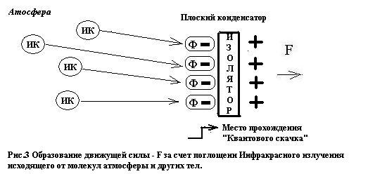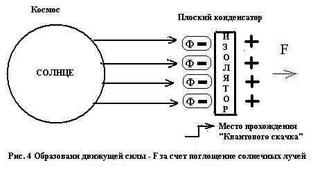 счет поглощения фотонов и последующего «квантового скачка». А вместе с ними, благодаря «квантовому скачку», начнет двигаться и конденсатор. Рис.4. Заключение Уверен, что в основе «летающих конденсаторов» или «элекрогравитации» лежит именно эффект «квантового скачка». Движение конденсаторов возможно не