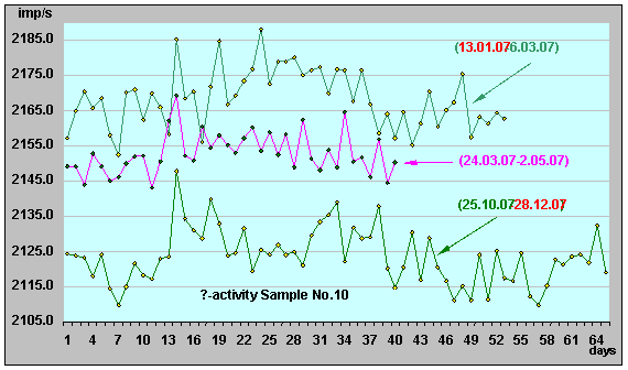 Рисунок 23. Относительная β-активность ИИИ №10 (25.09.06 - 2.05.07).