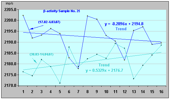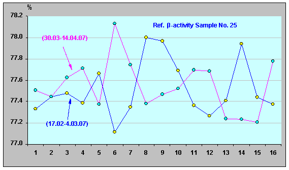 Рисунок 17. Относительная β-активность ИИИ №25. (30.03.07 - 14.04.07).