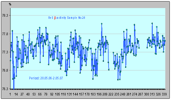 Рисунок 22. Относительная β-активность ИИИ №6 (25.09.06 - 2.05.07).