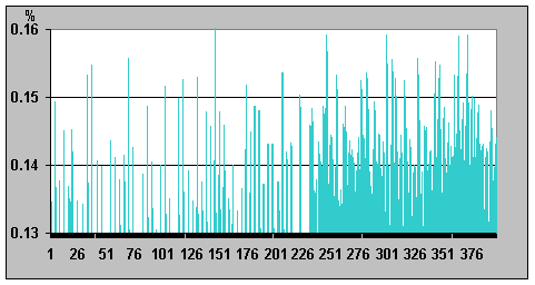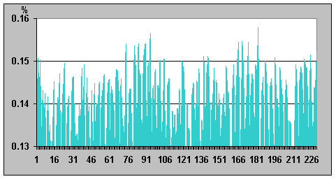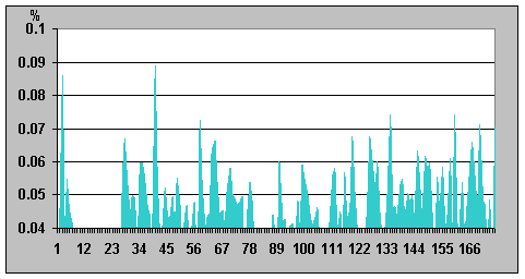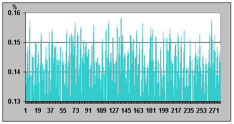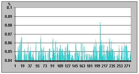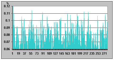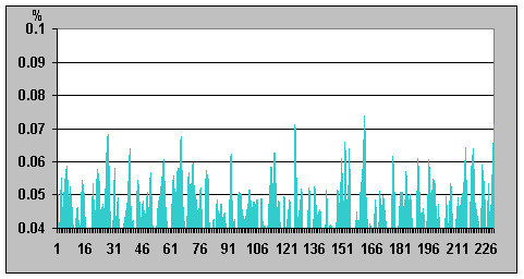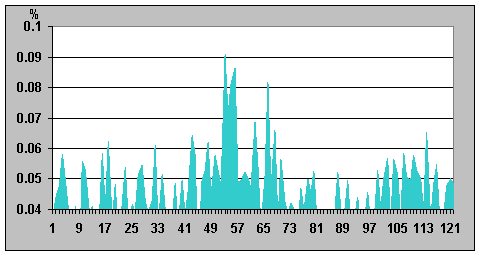 на графике; отличие значений интенсивности 0,03638%). Таким образом, это