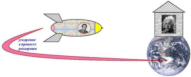 отсчета. Рис.1. Парадокс близнецов На этапах разгона, торможения, разворота он испытывал