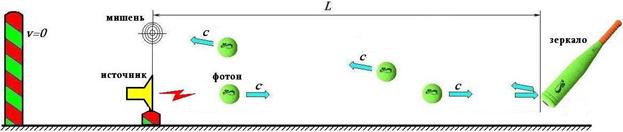 пролетом фотона через платформу. Время этого пролета по-прежнему равно L/c. Но фотон ничем не связан с