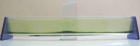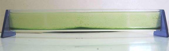 Что-то похожее на фантомы фиксируется и в наших экспериментах с гомогенатом зеленых листьев и пространственной неоднородностью воды регистрируемой по измерению ее рН, описанных в предыдущих работах [13-15]. Как уже говорилось в работах [13, 14] предметы, помещенные рядом с кюветой с гомогенатом приводят к формированию бугорков осадка гомогената точно напротив предмета (рис. 1, вверху). Если после этого гомогенат слить из кюветы, перемешать и опять залить в кювету, то бугорок осадка появиться точно в том же месте и в отсутствии предмета – в данном случае стеклянной пластины шириной 25 и толщиной 6 мм (рис. 1, посредине). Складывается впечатление, что во втором случае гомогенат реагирует на фантомный образ пластины.