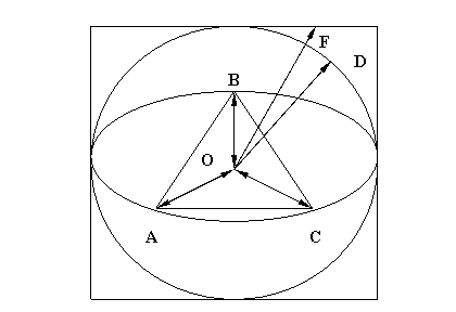 Рис. 1 Схема Триагональной Структуры Мироздания. О – Абсолют, А – Пространство, В – Масса, С – Энергия, D – Информация, F – Код действия. Как видно из представленной схемы, структура Мироздания представляет собой сферу (женское начало), вписанную в равновеликий куб (мужское начало). Информация (Информационное Поле) расположена на сфере, и продуцируется Абсолютом. Информационные коды действия, посылаемые Абсолютом через матрицу, управляемую определенной программой, сосредоточены на гранях куба. Коды действия прямолинейно направлены и нигде не сопрягаются друг с другом. Пересекаются они только в нулевой точке Абсолюта. Само понятие